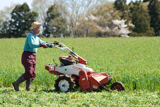 麦などの緑肥を土に混ぜ込むことを「鋤き込み」(すきこみ)といいます。三月になると、他の農家は、まだ麦の穂も出ていない20~30センチの麦を鋤き込でしまいます。 (写真右の畑)