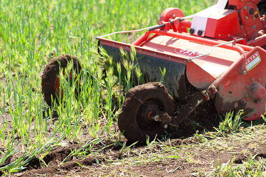 はなわ農園では暖かくなる四月中旬、麦の穂が出て背丈が60~70センチ以上になり、茎の中が管の状態になるまで麦を鋤き込みません。麦の穂にはたくさんのミネラルが含まれており、これが栄養となるのです。また、地温が十分に上がらないと(15度以上)鋤き込んだ麦を分解する微生物が十分に働らきません。